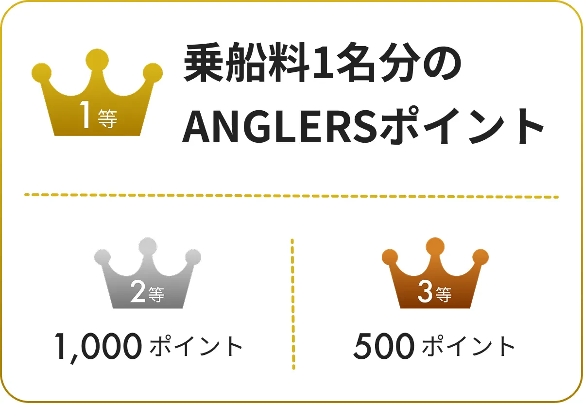 1等:乗船料1名分のANGLERSポイント(上限10,000pt)