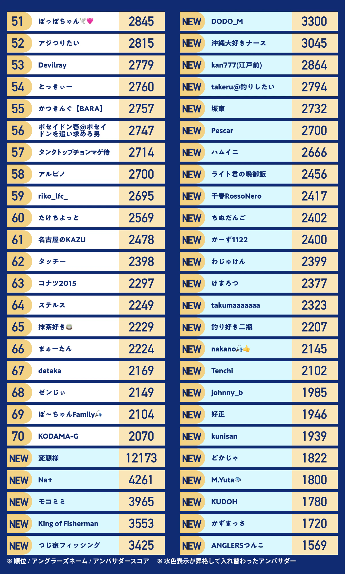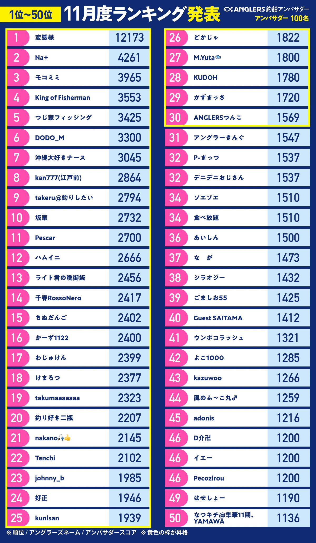 ※10月に惜しくもトップアンバサダーに届かなかった方と新規エントリーの方のランキングです。