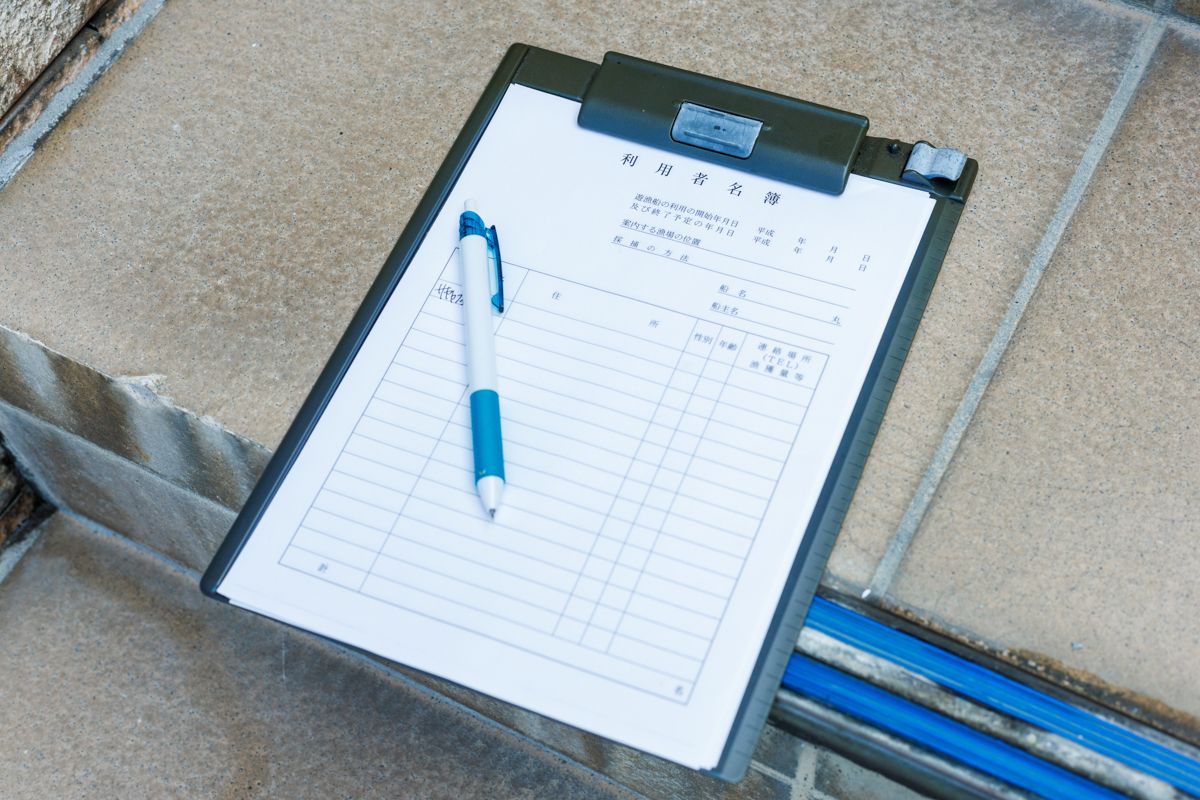 乗船名簿にご記入頂きます。釣座は宿泊所玄関のホワイトボードに名前を記入してください。先着順とさせていただきます。