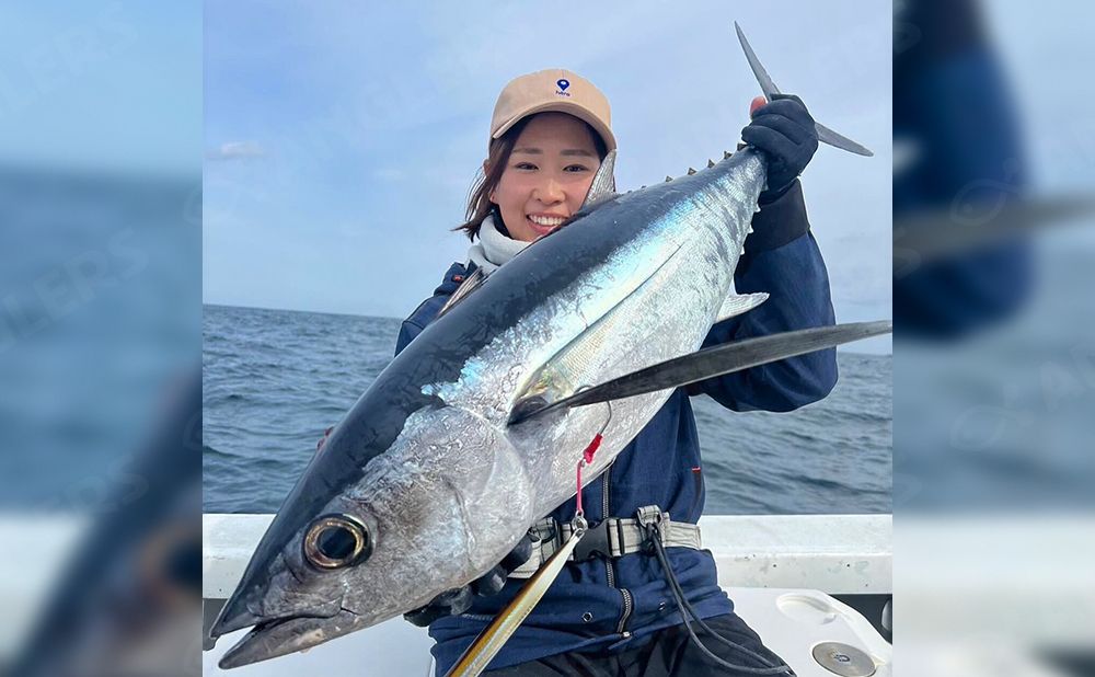 トンボマグロ(ビンチョウマグロ)は非常に長い胸ビレが特徴。長い胸ビレをトンボの羽に見立てて別名トンボマグロと呼びます。このトンボマグロをジギングで狙う釣りがトンジギです。マグロ類の中でもサイズが小ぶりでジギング初心者でも釣り上げやすいマグロです。