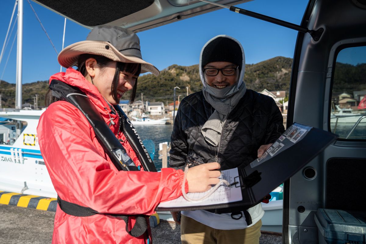乗船30分前に『乙浜港』(おとはまこう)までお越し下さい。 初めての方は時間に余裕を持ってお越しください。 船長の指示に従って駐車してください。